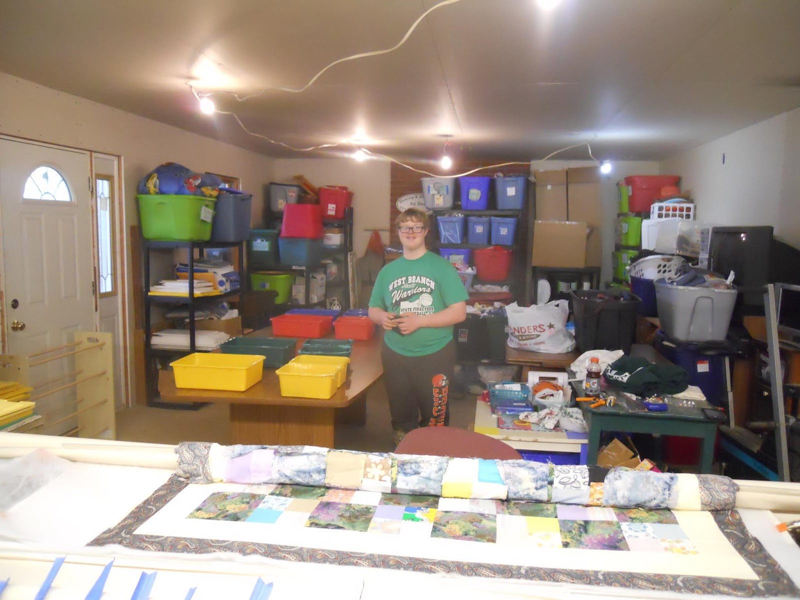 I had time to load the customer quilt that I got on 5/4 onto the frame. I couldn't decide how to quilt it. I had my son pick out how he wanted me to quilt the Ohio quilt. I set up Baptist Fan on the customer quilt to see how it would look and it was a winner. I even had time to quilt a little. The rest of the clutter will have to wait a little longer. Even though we had snow on the ground my husband turned on the furnace and heated the longarm room so that I could quilt on Mother's day. I'm a tight wad and don't like to burn fuel oil in the large area. Sunny days are coming, right?