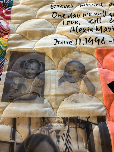 When I loaded the quilt I tried hard to calculate where the stitches would land. I really didn't want to quilt over that sweet face. I also didn't want to do any custom stippling around the photos.